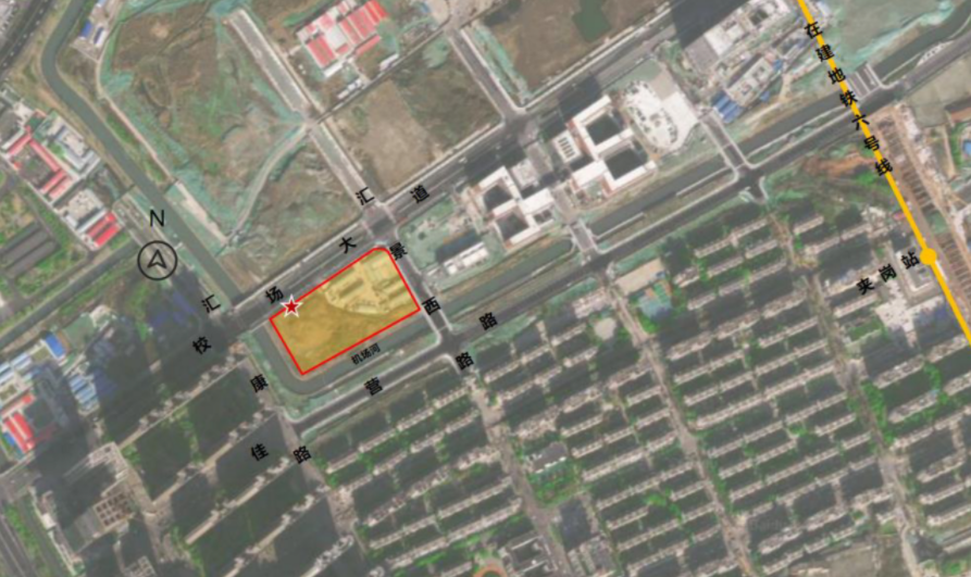 地块东侧隔汇景西路为在建幼儿园、初中用地,隔机场河有规划有轨电车。