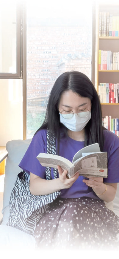 读者在北京延庆石峡村长城文化图书馆内阅读。