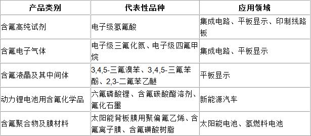 表格1:国内代表性含氟电子化学品