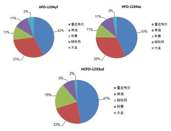 图1:主流HFOs产品专利数量占比