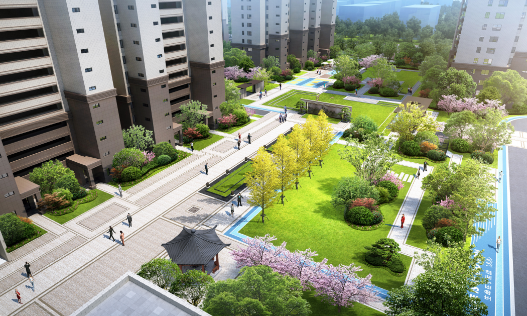 在景观设计上,结合海绵城市设计理念,匠心打造五进归家礼序,阳光草坪、景观会客厅、活力慢跑道、童梦园……全龄共享。