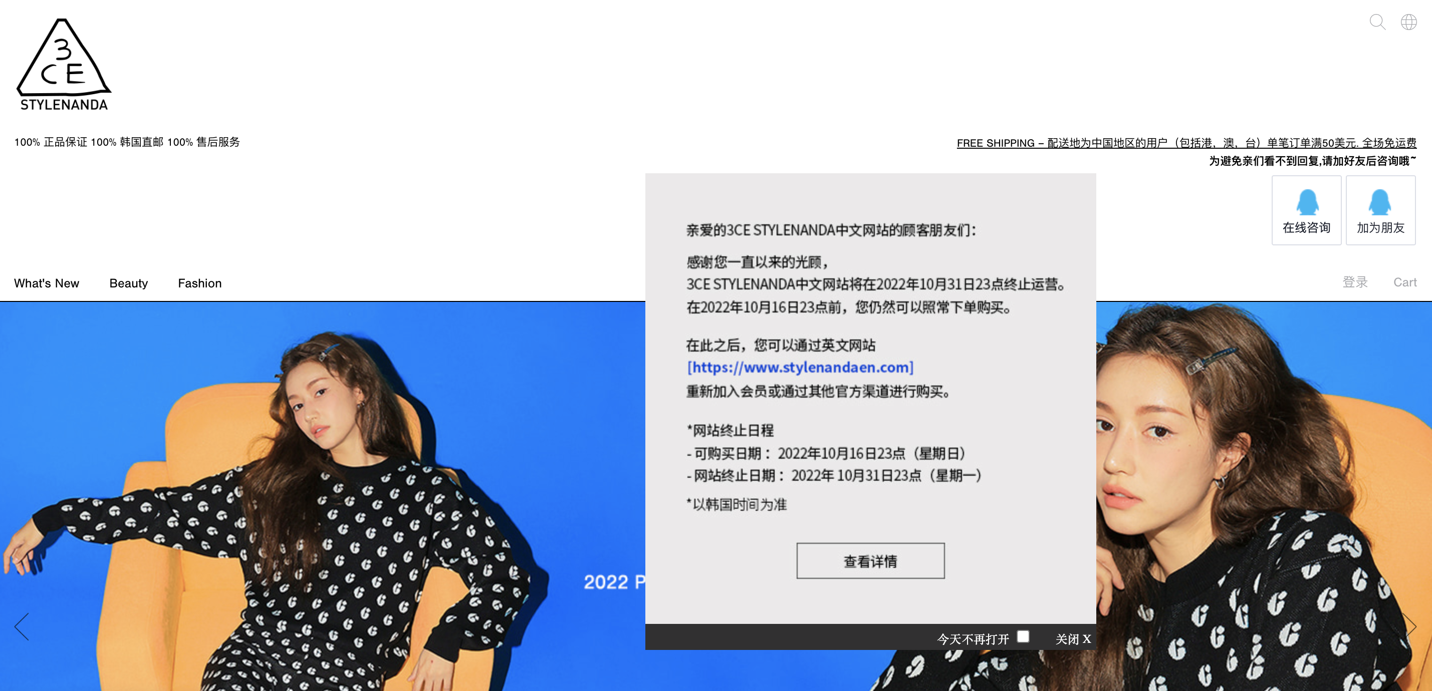 韩国时尚品牌Stylenanda近日正式关闭天猫海外旗舰店。其中文官网也发布停运声明。相关声明称,10月16日后消费者无法再通过其中文官网购买其产品,而且其将在12月31日后停止提供中文服务。