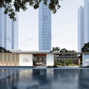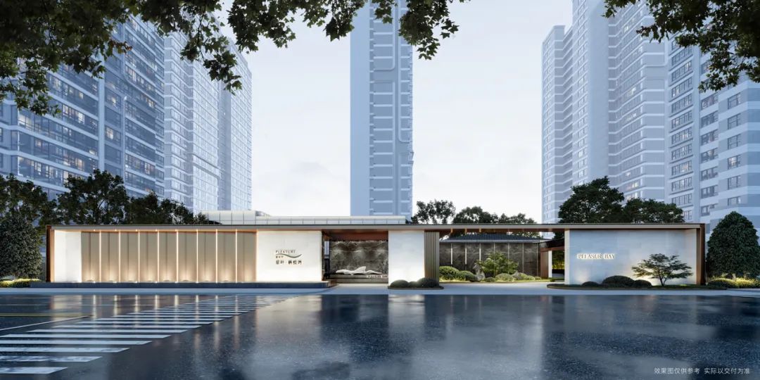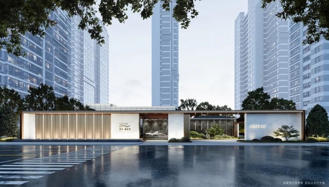 小区设计:建筑立面设计上,采用高窗墙比、弧线设计,约51米恢弘社区大门,整体观感高端大气、尊贵。