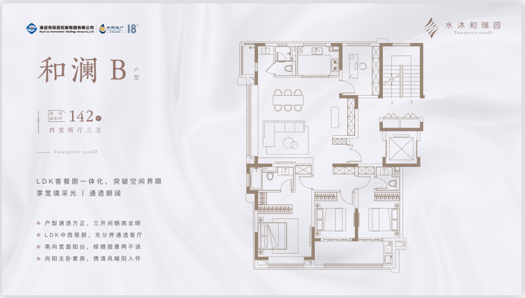 值得一提的是,这是继璞境之后,江苏水利第二次进入江心洲,也是在南京独立操盘的首个项目。户型方面,项目打造142-285㎡的面积段,其中建面约142㎡两大户型图曝光,A户型建面约142㎡4房2厅2卫、B户型建面约4房2厅3卫。