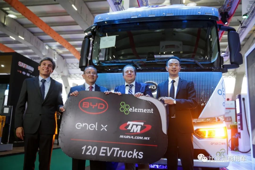 “比亚迪商用车”微信公众号消息,近日,比亚迪墨西哥分公司在墨西哥普埃布拉州的物流运输展览会(Expo Transporte)上向当地大型交通运输公司Marva交付了首批5台纯电动半挂牵引车Q3MA。到今年年底,比亚迪将向Marva交付共120台纯电动半挂牵引车,组成比亚迪在拉美的首批纯电动牵引车车队。