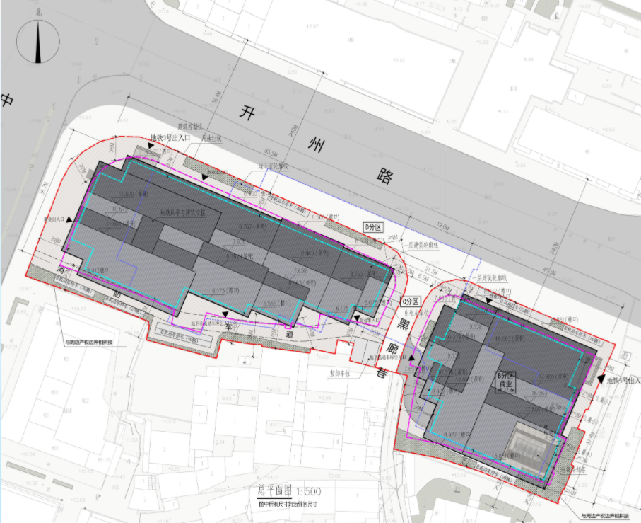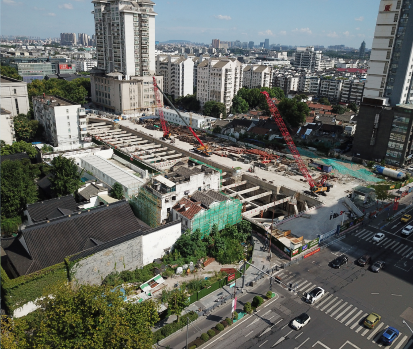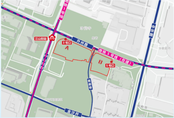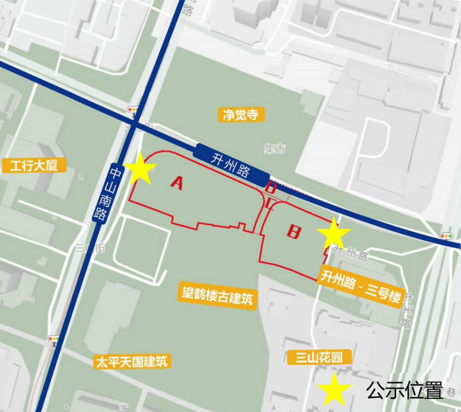 项目位于《南京历史文化名城保护规划(2010-2020)》确定的城南历史城区范围,位于升州路与中山南路交叉口东南象限,东至升州路三号楼,南至望鹤楼古建筑、金沙井 20号楼,西至中山南路,北至升州路,规划为地铁轨道1号线及在建地铁轨道5号线换乘站,分为东、西两个地块。