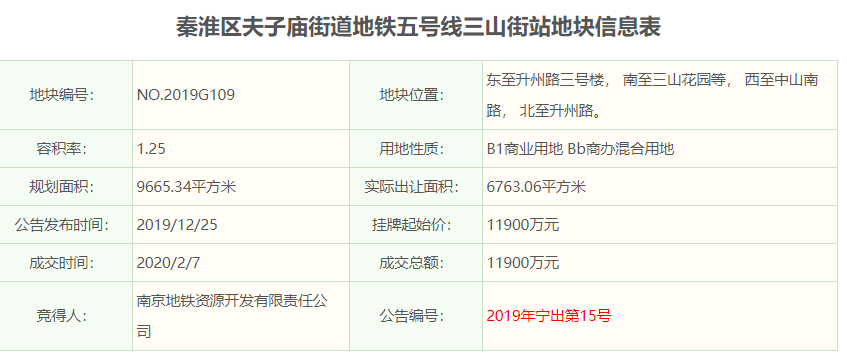 2020年2月7日,该地块由南京地铁资源开发有限责任公司以底价1.19亿元通过招拍挂方式取得土地开发使用权,成交总金额并于2020年3月25日受让人变更为南京虎踞通途置业有限公司。
