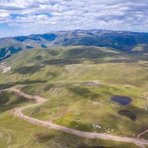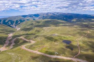 在新疆巴里坤哈萨克自治县拍摄的(北)京新(疆)高速公路上的一处出入口(2021年6月28日摄,无人机照片)。新华社记者 胡虎虎 摄
