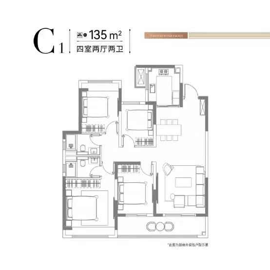户型方面,项目打造110㎡三房两厅两卫、135㎡四房两厅两卫、142㎡四房两厅两卫和168㎡四房两厅两卫四大户型。