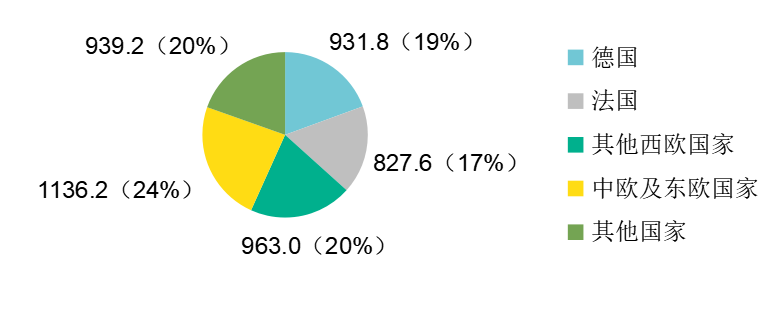 CLAAS在全球各地区销售量(单位:百万欧元),数据来源:CLAAS年报 35斗制图