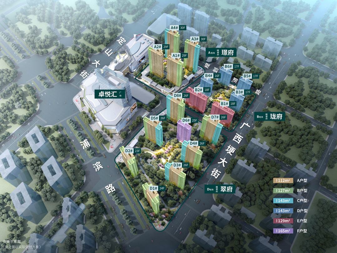 根据效果图来看,项目共打造了11栋15-16层的高层住宅,其中A地块共5栋15-16层住宅,B地块共6栋16层住宅。