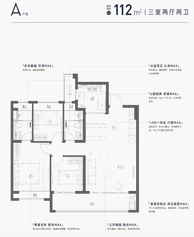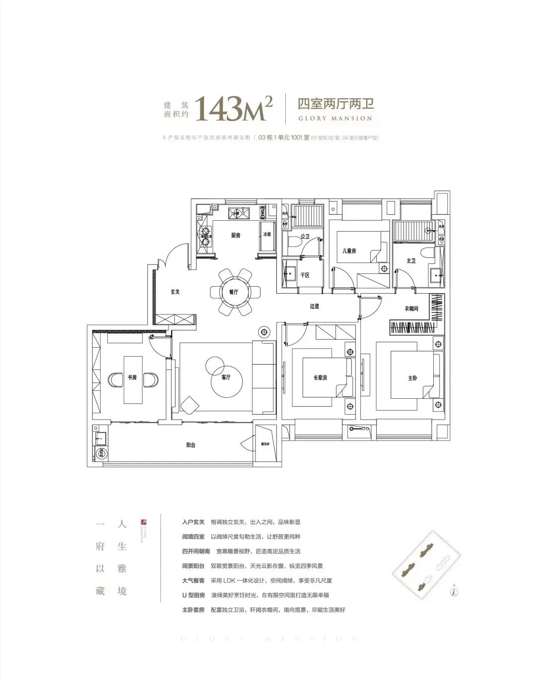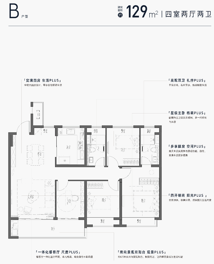 产品户型方面,打造建面约143㎡、168㎡的四房产品。