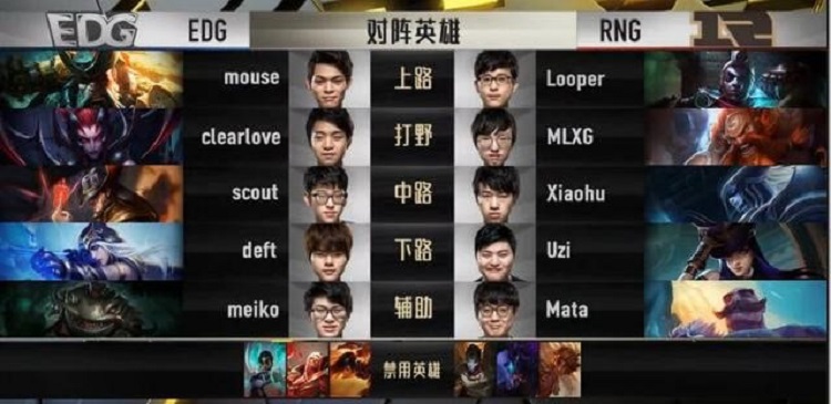 EDG则ban掉了扇子妈,吸血鬼,轮子妈,选择了艾克,挖掘机,劫,寒冰,布隆。