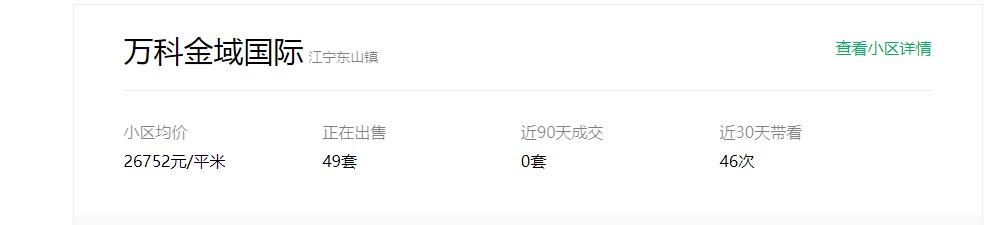 据链家网显示,万科金域国际9月二手房挂牌价为26752元/㎡,主要在售78-128㎡的次新房,首付三成,约60万,共有46套房源在售。