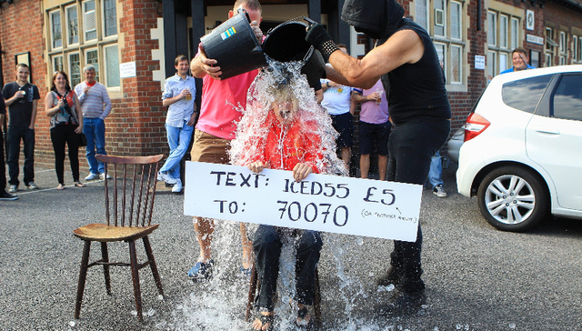 当时,这项旨在让更多人了解肌萎缩性脊髓侧索硬化症(ALS)的活动风靡全球。其规则“名副其实”,需要参与者在头上浇下一桶冰水,将此过程拍视频传至社交媒体,再点名邀请3个人接力挑战。被点名者要么在24小时内完成,要么向世界上最大的ALS研究慈善资助者ALS协会(ALS ASSOCIATION)捐款100美元。