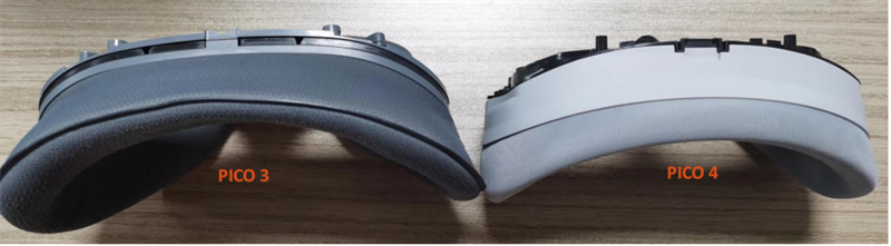 厚度实测:Pico 4前端厚度约48mm,Pico 3前端厚度约为63mm,前端厚度减少24%。(与官网相差较大,官网的38.8%或算上了面罩等其他组件)。