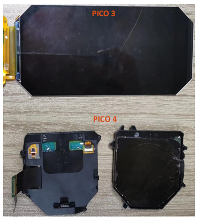 Pico 4镜片口径约为52mm,Pico 3镜片口径约为47mm,镜片口径增长约10%。我们看到Pico 4的视场角(FOV)也增长到105度,而Pico 3视场角为98度,视场角增长约7%。