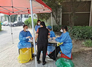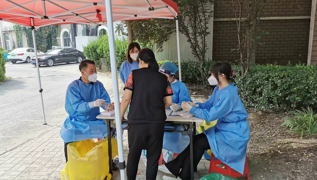 “请大家戴好口罩,出示健康码,保持一米安全距离!” 清晨五点,尚赫爱心志愿者周建春就在自己所居住的社区内上岗了。搭帐篷、搬桌椅、调试设备,等到社区的居民有序下楼,他再随着核酸检测的队伍从头喊到尾,协助维持秩序后,又开始清点检测试管、给点位消毒、帮助居民们扫码……从天不亮的清晨一直忙活到下午,防护衣都已经湿透,摘下帽子时头发湿的贴在头皮上。