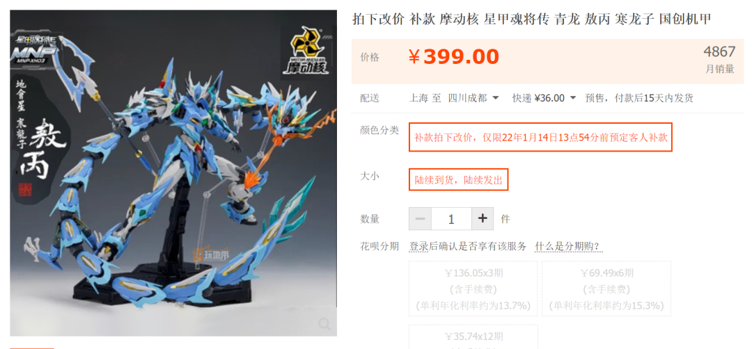 指乐无穷店铺,核能矩阵的人鱼机娘预定,月销超过2000。