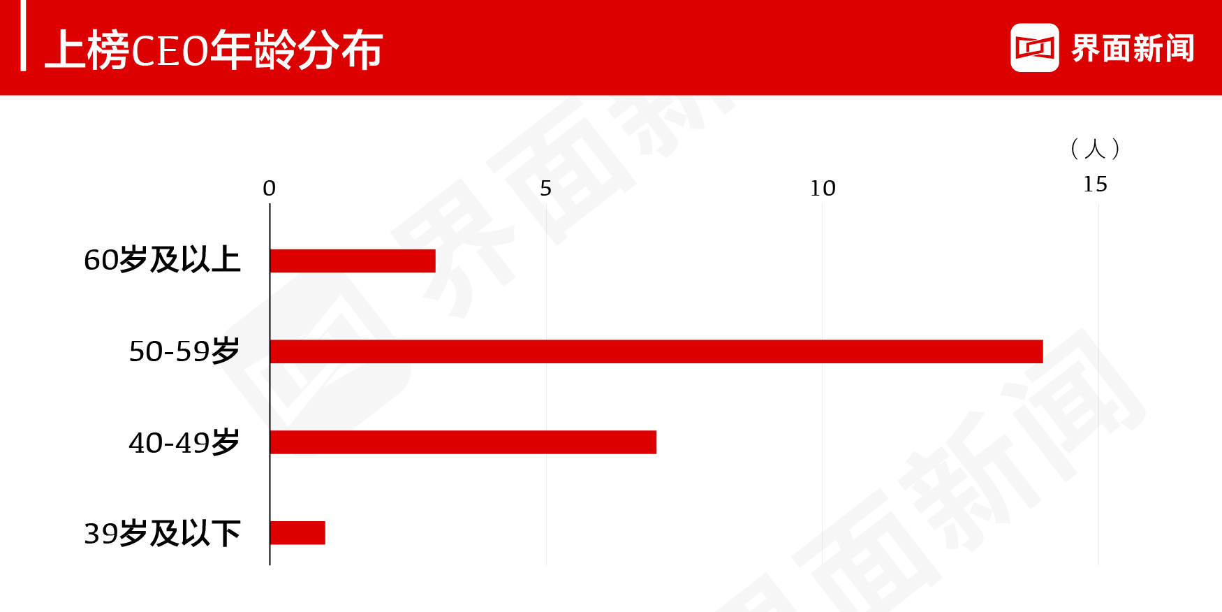 上榜的25位CEO均为男性,平均年龄52岁,其中最年轻的当属高测股份的张秀涛,今年39岁。