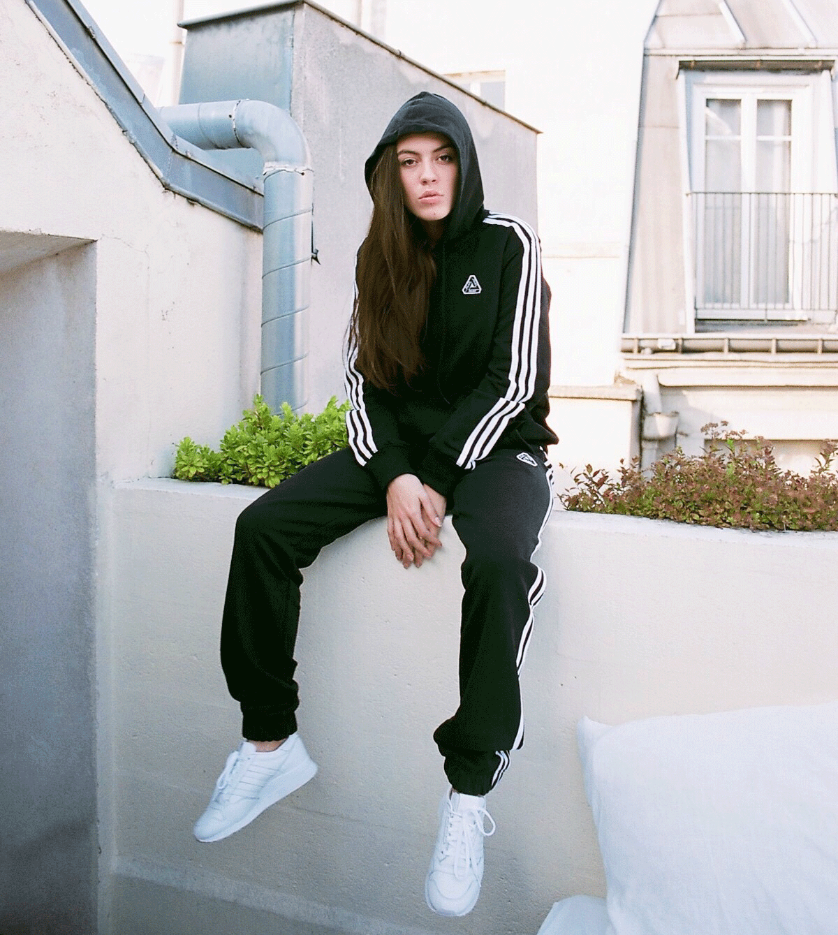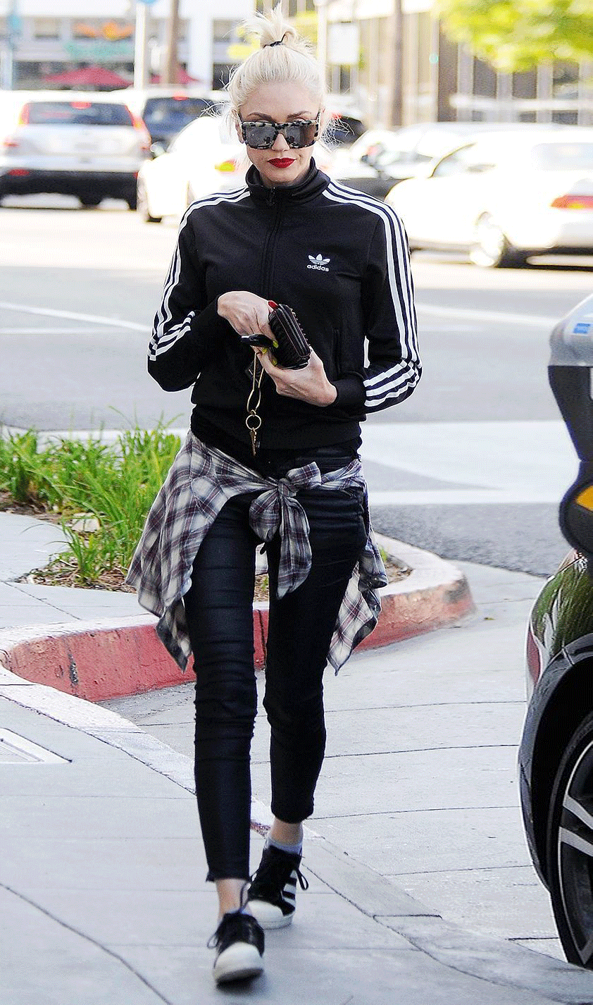 ▲最经典最保险的穿搭就是黑白配色的Adidas三叶草复古运动服,不管肤色如何,都不会穿错。