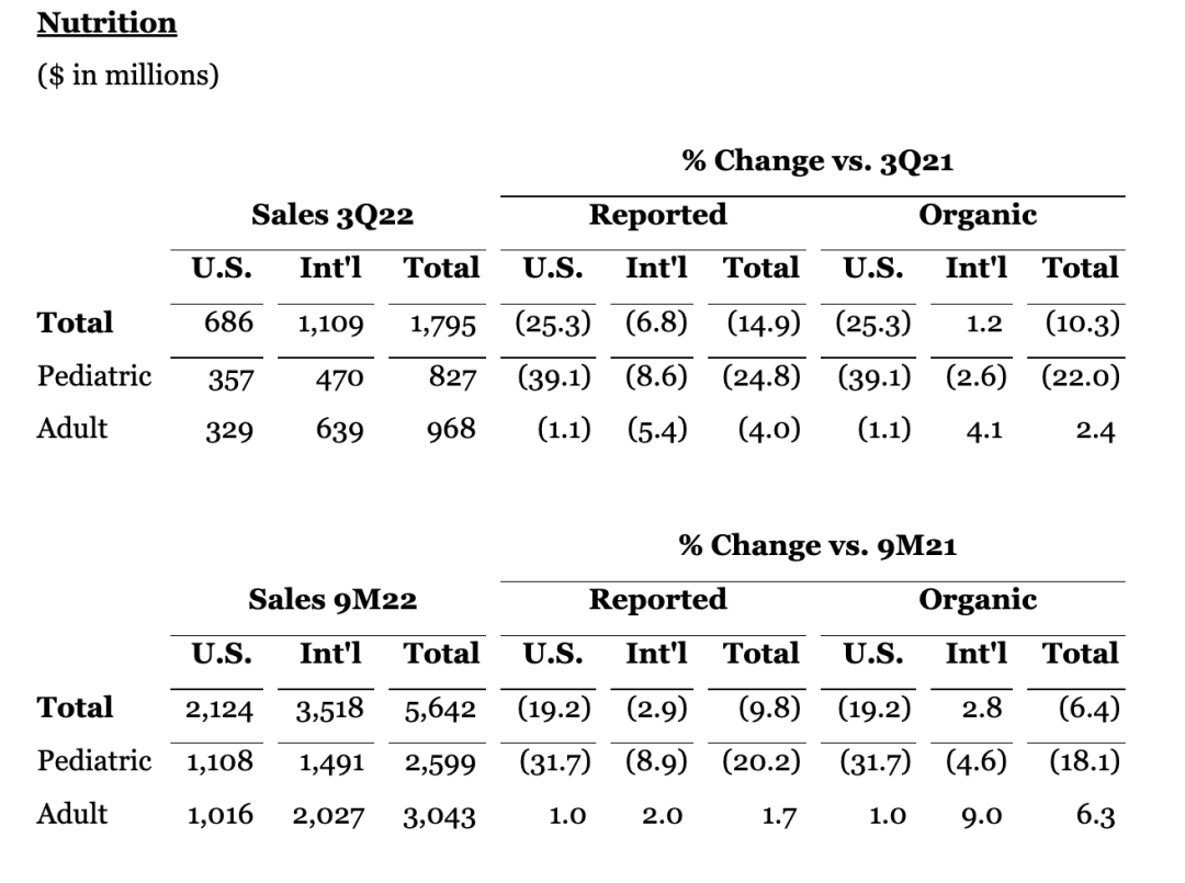 三季报中的雅培营养品业务表现