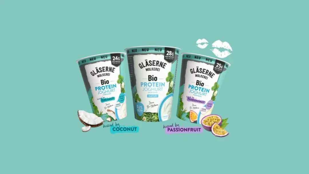 德国有机乳制品品牌Gl serne Molkerei推出的一款高蛋白有机酸奶Bio Protein Joghurt,包含原味、百香果味与椰子味。产品均富含有机蛋白质,每杯酸奶能提供约25g蛋白质,能满足人体每日所需摄入,仅含有0.2%的脂肪,可搭配麦片或水果食用。据悉,该品牌生产基地位于勃兰登堡州的Münchhofe与梅克伦堡的Dechow,均从当地获取有机牛奶后加工成各类有机优质乳制品。