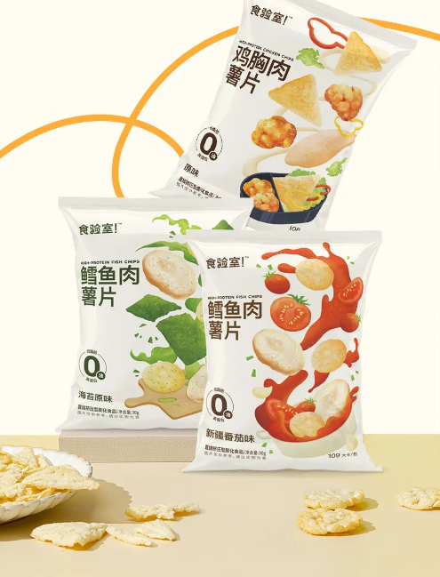 在今年8月份,食验室推出其高蛋白肉薯片系列升级新品:0油调味肉薯片,共包含海苔原味鳕鱼肉薯片、新疆番茄味鳕鱼肉薯片与原味鸡胸肉薯片。据悉,新品均采用全新0油调味技术,单包脂肪含量≤0.8g,肉含量≥30%,每100g产品中含有27.6g蛋白质,其蛋白质含量为牛奶的9倍,最低相当于4个鸡蛋。