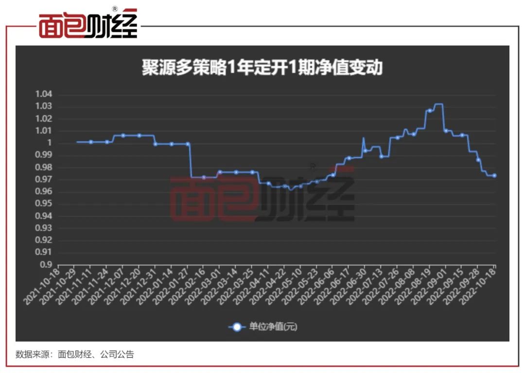 如上文所述,已经公告将于2022年10月28日提前终止的“苏银理财聚源多策略1年定开1期”具有一定的代表性。