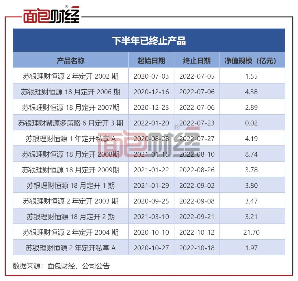 公开数据显示,2022年下半年以来,苏银理财旗下已经有超过10款产品公告提前终止。