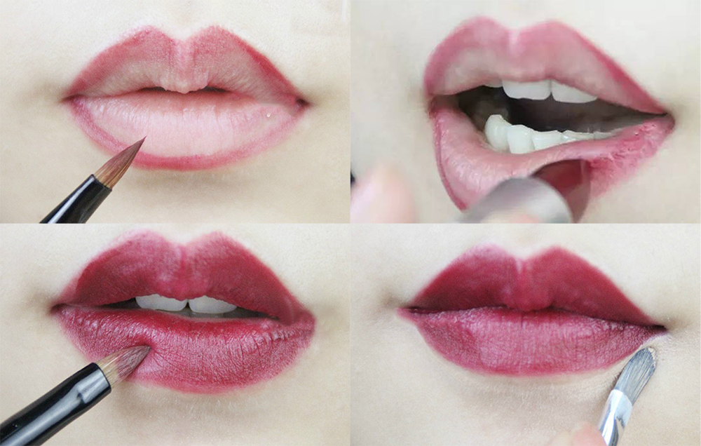 唇线描绘好之后,用喜欢的口红填满唇线内的空白处,此处最好使用小刷子。虽然我们平时比较少用,但事实上,一把好用的唇刷对口红的上妆效果十分关键。相比于直接用膏体涂抹,唇刷更容易把握口红的上色程度,使口红涂抹更均匀,也更容易处理唇部细微的地方。