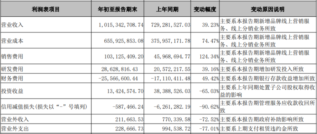 截至前三季度,壹网壹创实现营业总收入10.15亿元,同比增长39.23%;实现归属于上市公司股东的净利润1.47亿元,亦同比下降了27.83%。
