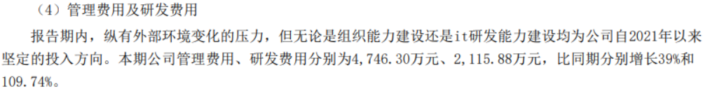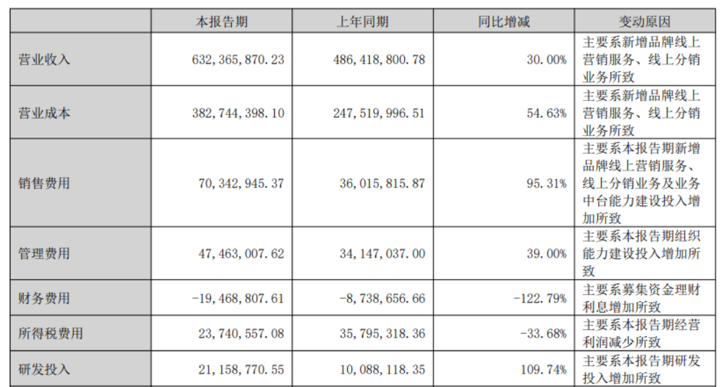 对此,壹网壹创解释为:一方面,二季度“双品网购节”、“618”等大促导致用户消费需求集中释放,三季度网络零售市场进入消费淡季;另一方面,受国内疫情多点散发及公司持续建设组织能力、自动化系统等因素影响,公司的销售费用、管理费用、研发费用仍有较大投入。