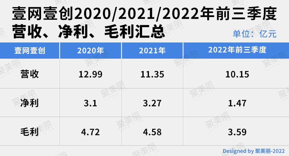 壹网壹创2020/2021/2022年前三季度营收、净利、毛利汇总
