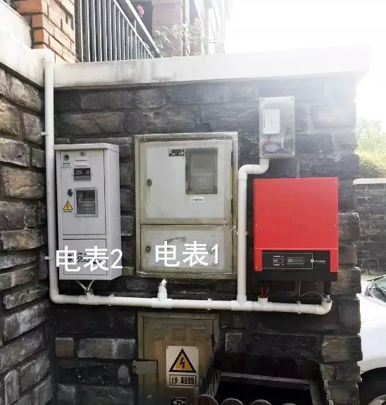 我们看到实际在光伏系统接入过程中我们一共有2块电表,其中电表1是原有家庭电表更换后的双向电表,增加了双向计量功能,电表2是新增加的光伏计量表,可以计量每一度光伏系统的发电量。
