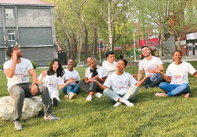 对汉语非母语的中文学习者来说,学习中国古诗词,可以领略中华文化的魅力。图为今年4月,北京第二外国语学院汉语学院的来华留学生在校园中排练诗歌吟唱。