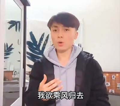 王禹正在录制北京语言大学“德行言语六十载”中华经典诵读大赛的参赛视频。
