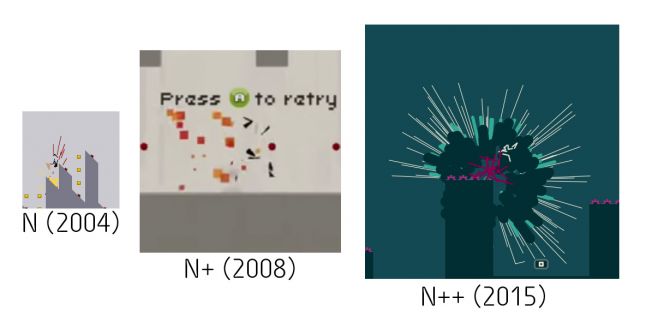 针对此,他们从2013年到2016年开始开发《N++》。项目的目标是利用十多年来的积累努力开发最好《N》系列游戏新作。事实上,效果还是不错的,只是过程耗时很长且充满了困难。