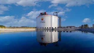 国内首座陆上液化天然气(LNG)薄膜罐竣工。