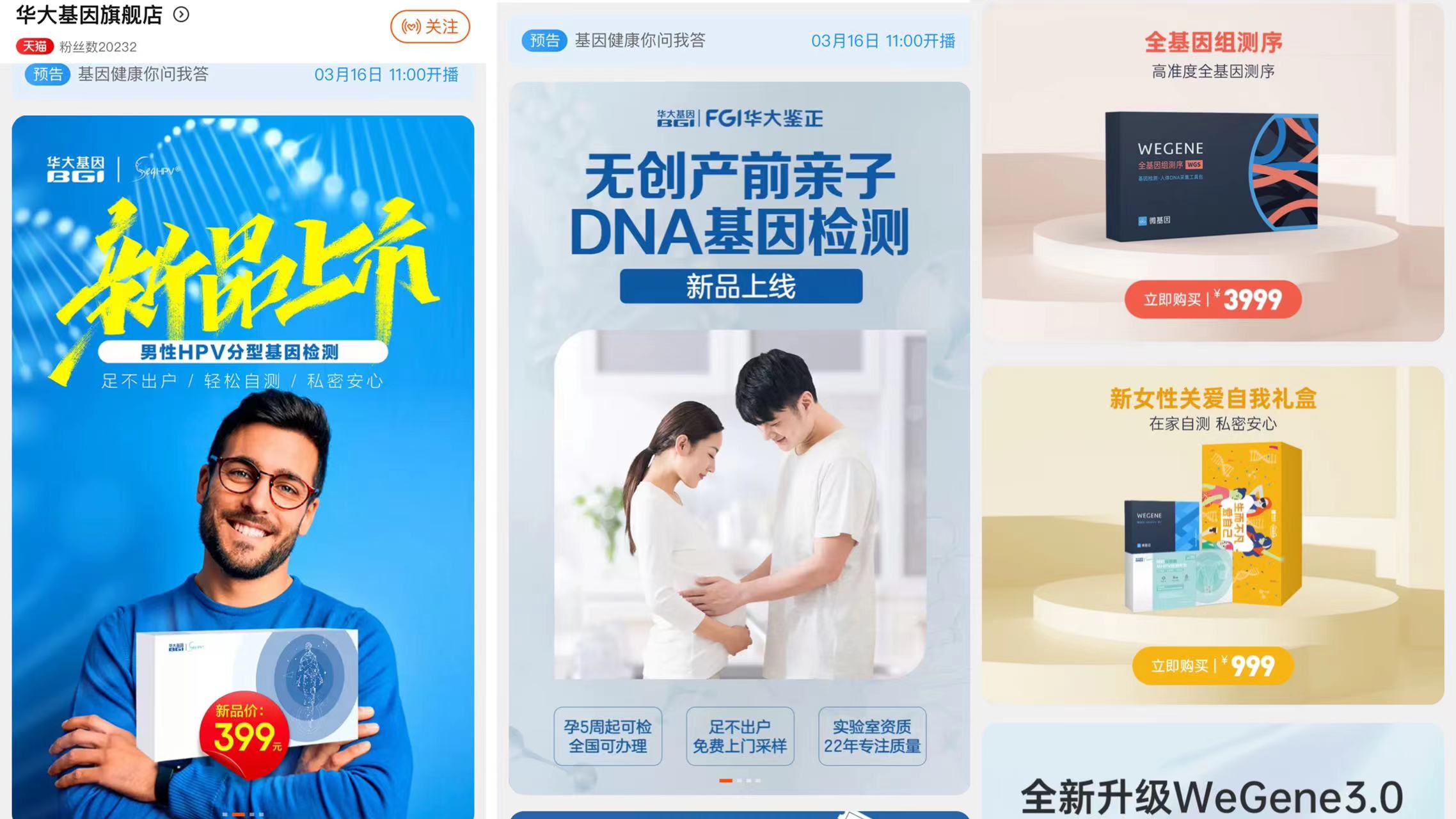 另一家微基因(We Gene)方面,其背后公司的全称为“深圳市早知道科技有限公司”,华大基因是其股东,且持股比例约10%。当前,华大基因还独立拥有自己的旗舰店,产品包含男性HPV自检分型基因检测、无创产前亲子DNA基因检测等。