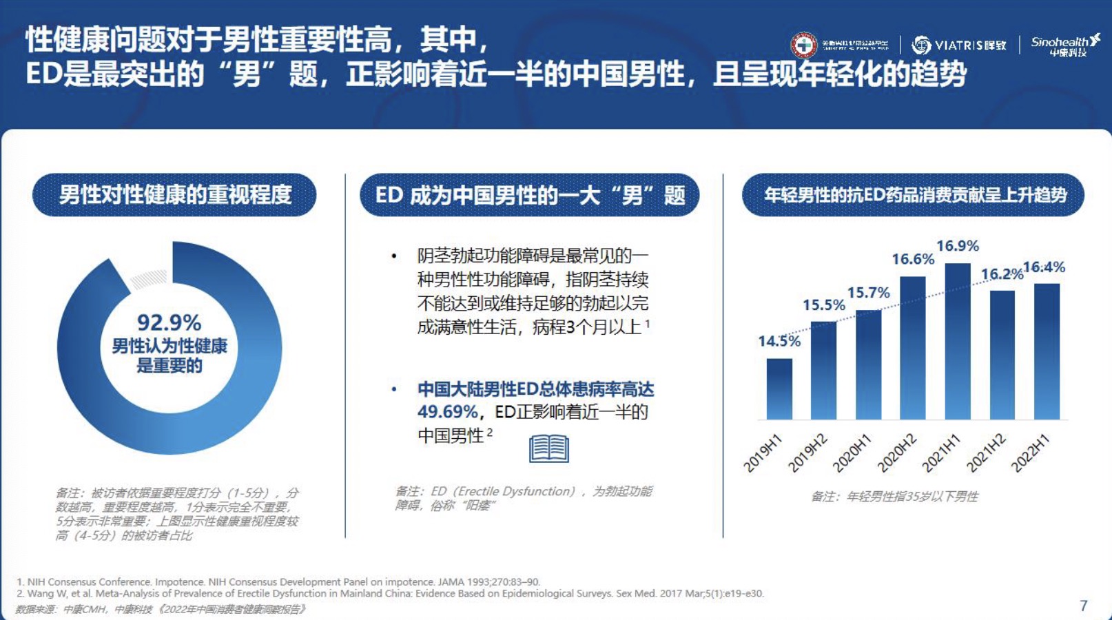 近日,根据晖致医药联合中国初级卫生保健基金会、中康科技共同发布的《健康中国·幸福时代蓝皮书》,中国大陆男性勃起功能障碍(Erectile Dysfunction,简称:ED)总体患病率高达49.69%,ED正影响着近一半的中国男性。