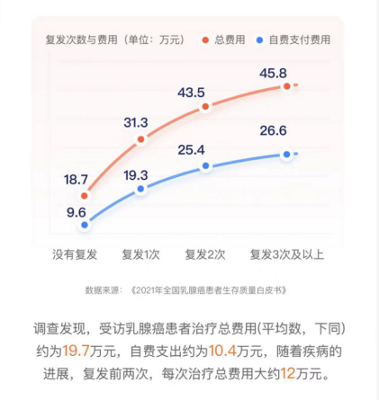 然而,乳腺癌较高的复发率和治疗费用又常常让患者们感到担忧。据美国癌症研究院SEER数据显示,乳腺癌患者总体复发率高达30%左右。《2022中国乳腺癌患者生存质量白皮书》显示,有超过七成的乳腺癌患者担心复发转移的发生。