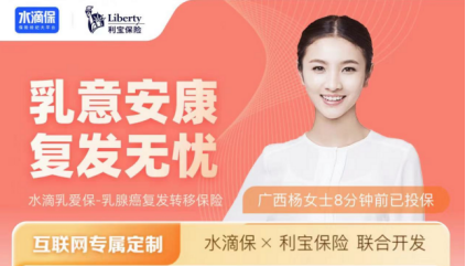 近日,水滴保险经纪有限公司(简称“水滴保”)联合利宝保险有限公司(简称“利宝保险”)共同推出了乳腺癌复发险“水滴乳爱保”,为乳腺癌患者构筑起防护墙!