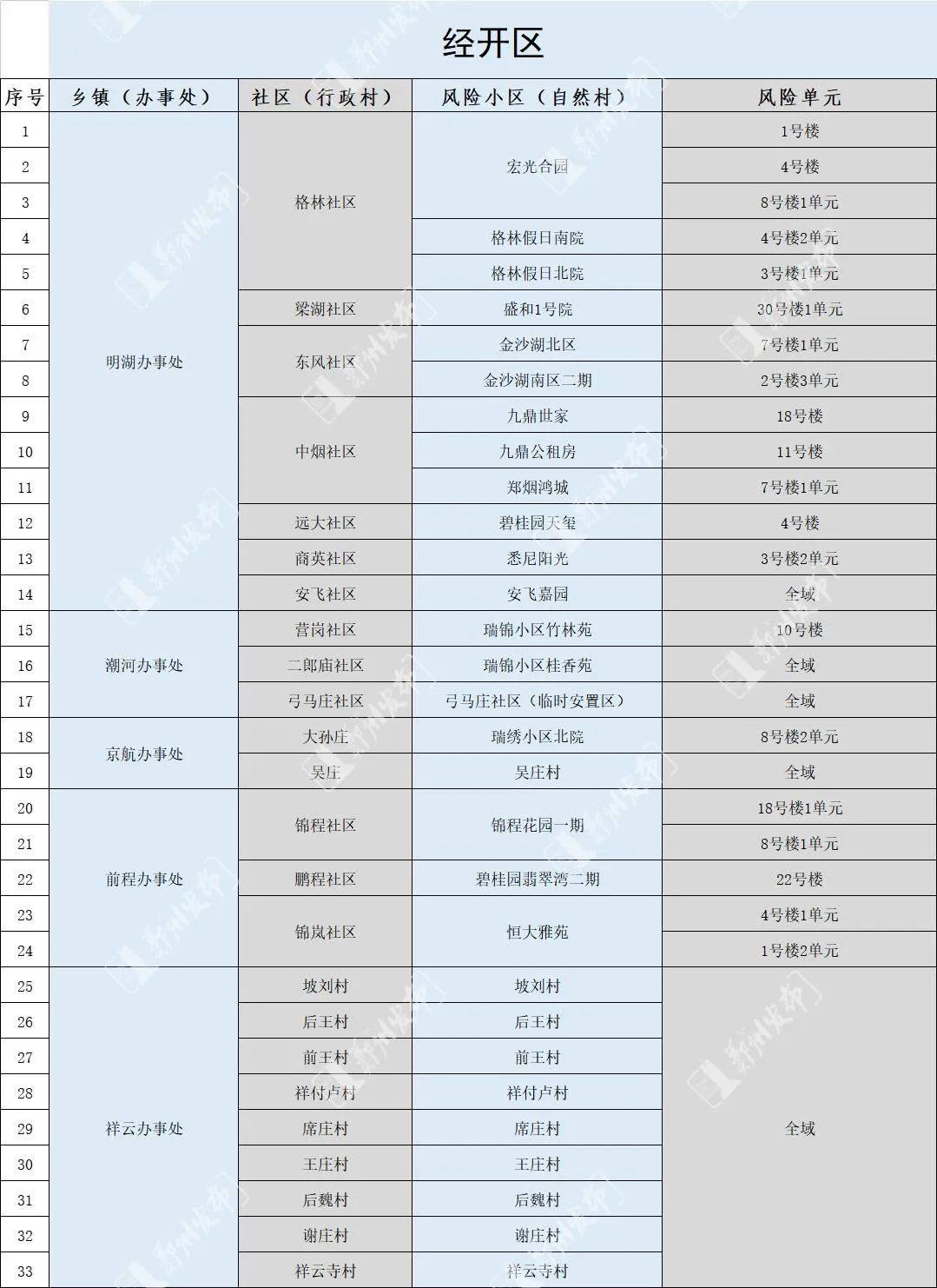 风险小区、风险单元名单
