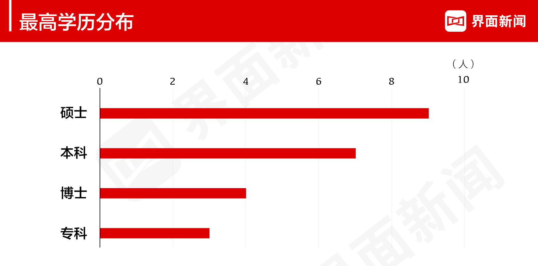在25位上榜的CEO中,有23位披露了学位,硕士和博士分别有9位和4位,高学历CEO占比超过半数。