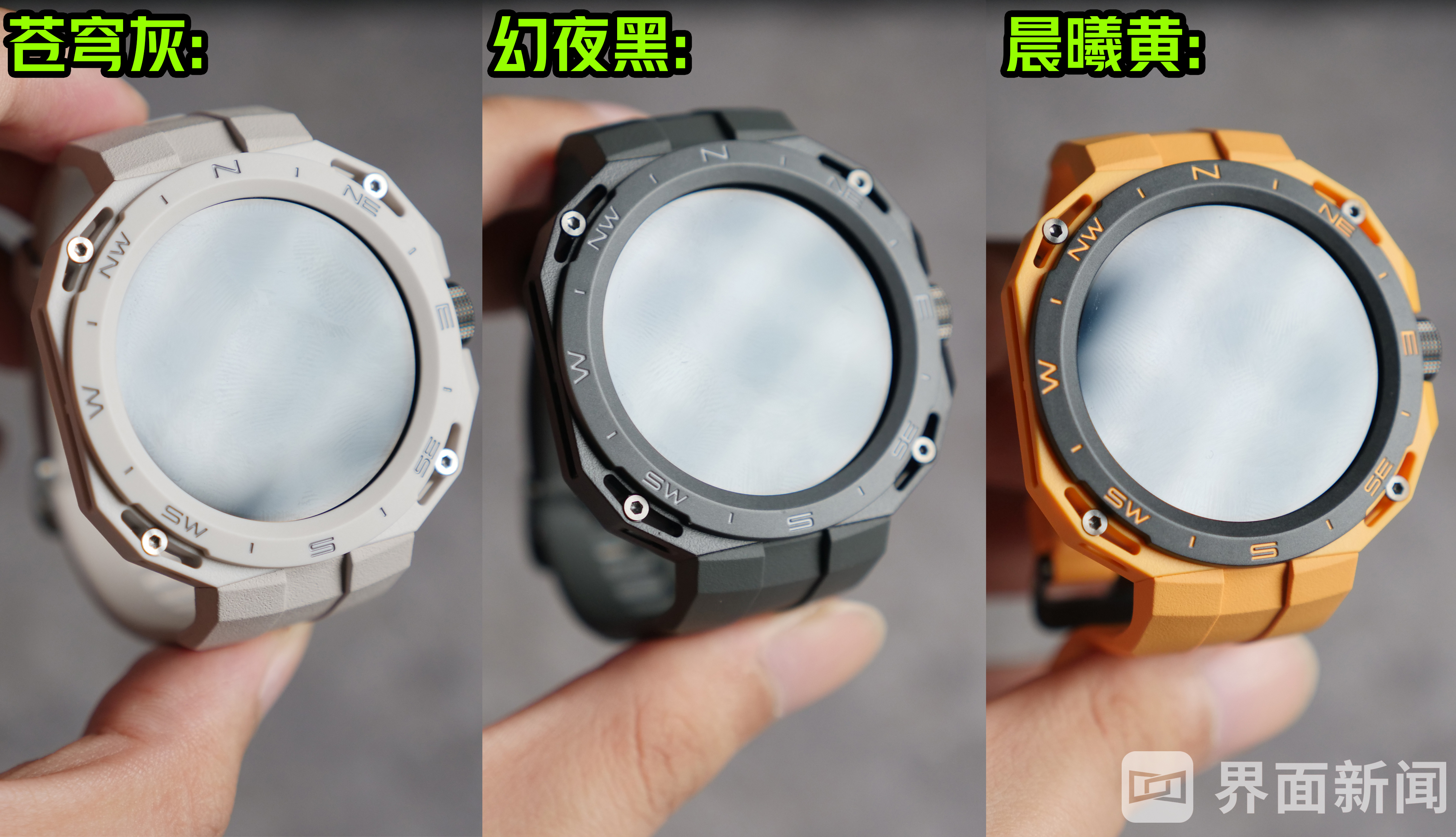 运动机能款则有幻夜黑、苍穹灰、晨曦黄三种配色,表体采用八边形设计,并内嵌了四颗六角螺丝,机械感之下年轻属性更强。