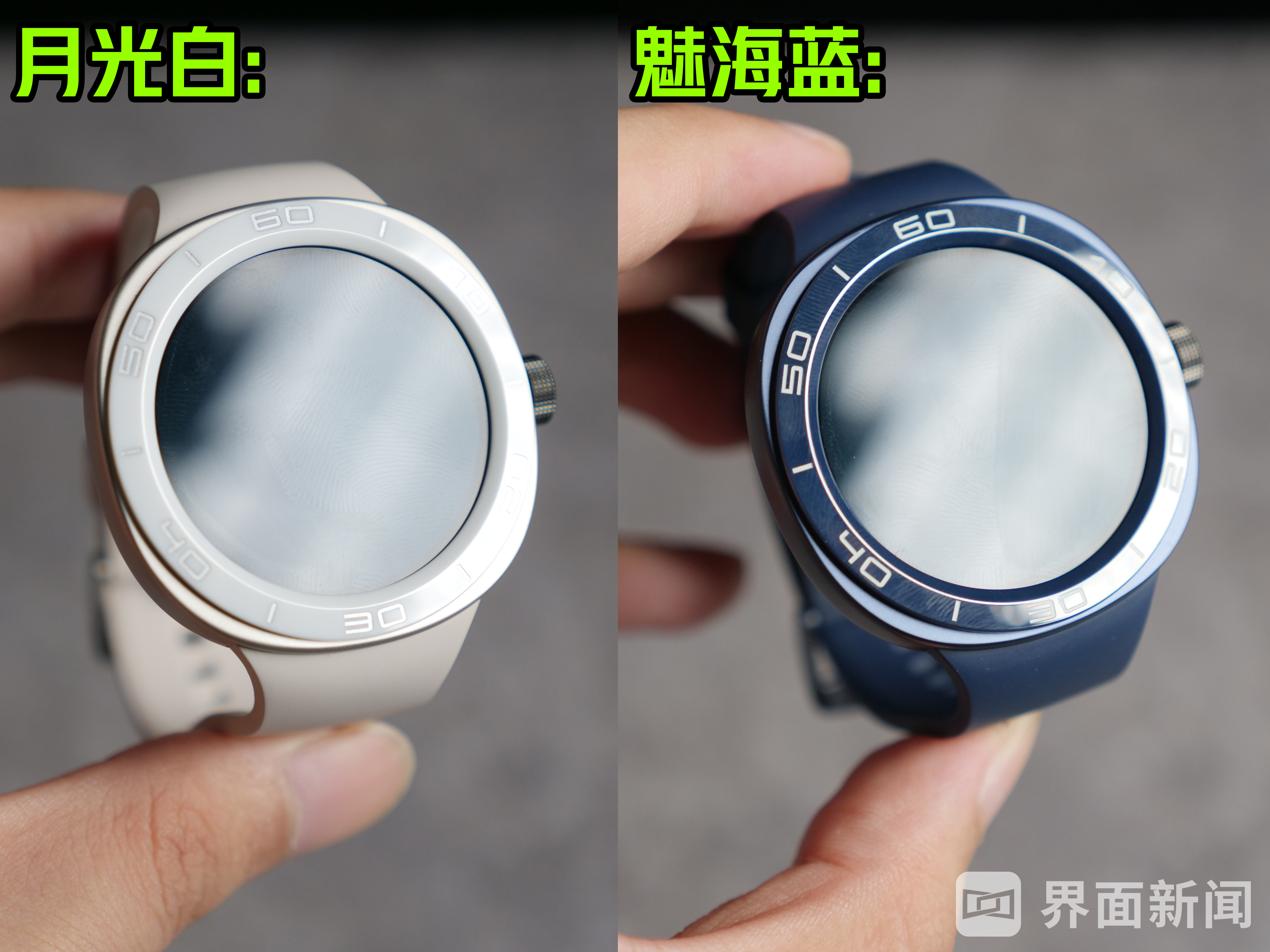 月光白与魅海蓝组成的时尚雅致款,表壳同样采用316L精钢材质,但其外观更加精巧,属于“秀气型选手。