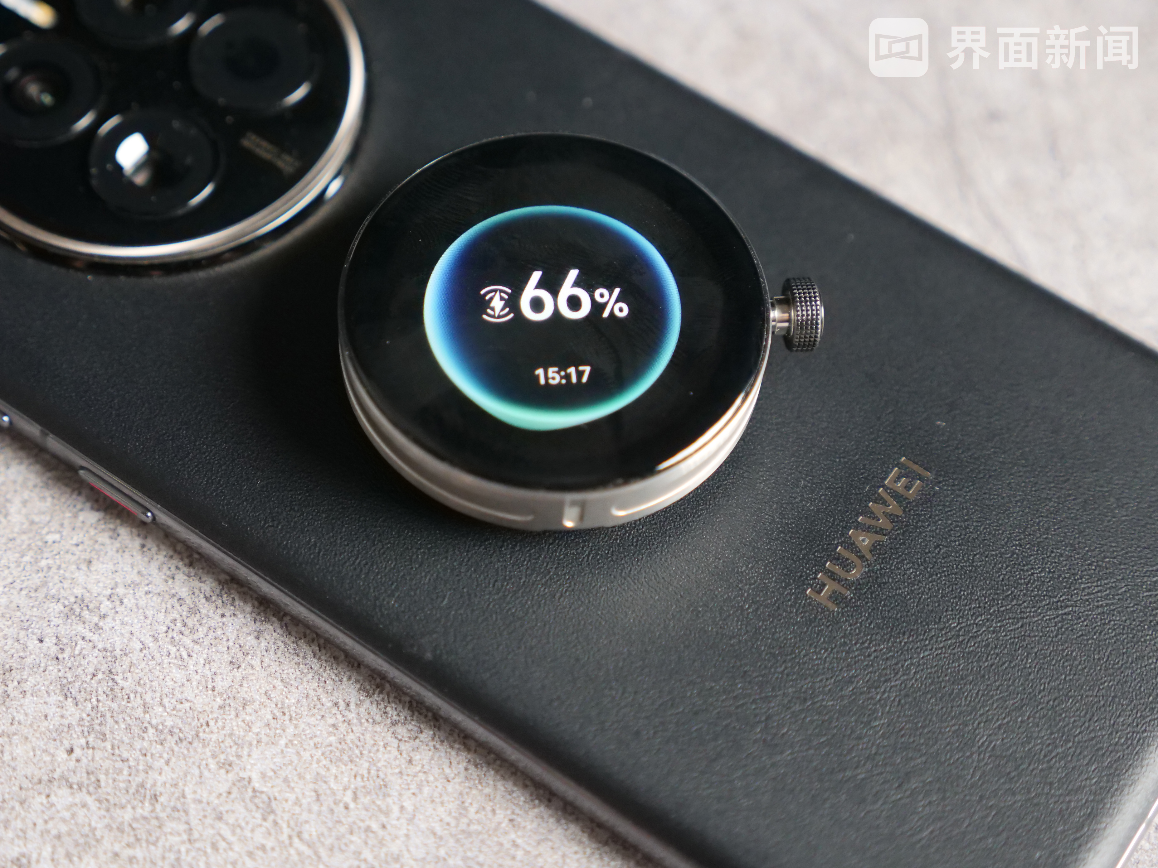 例如华为Mate 50这样的旗舰手机,往往都会搭载反向充电技术,因此Mate 50可对华为WATCH GT Cyber进行无线充电,此时手机可被视作一块充电板,在特殊情况下为手表的续航救急。