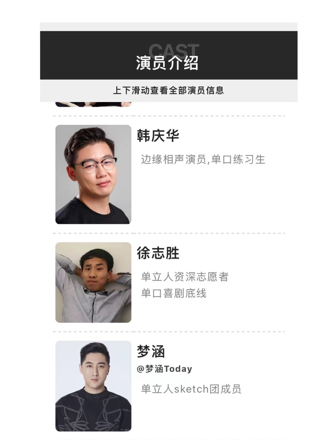 在第一季中,除了默剧演员武六七、王梓等,单立人还贡献了10个编剧,25个节目。而到了第二季,单立人的出场频率更高了,除了强调自己是单立人演员的李逗逗外,单立人元老刘旸也在节目中大放异彩,「虎父无犬子」「没有学习的人不伤心」两个节目都拿下了上万的高分,而第一季的编剧鑫仔,这一季也作为演员参赛,参演担任编剧的《少爷和我》更是火爆全网。