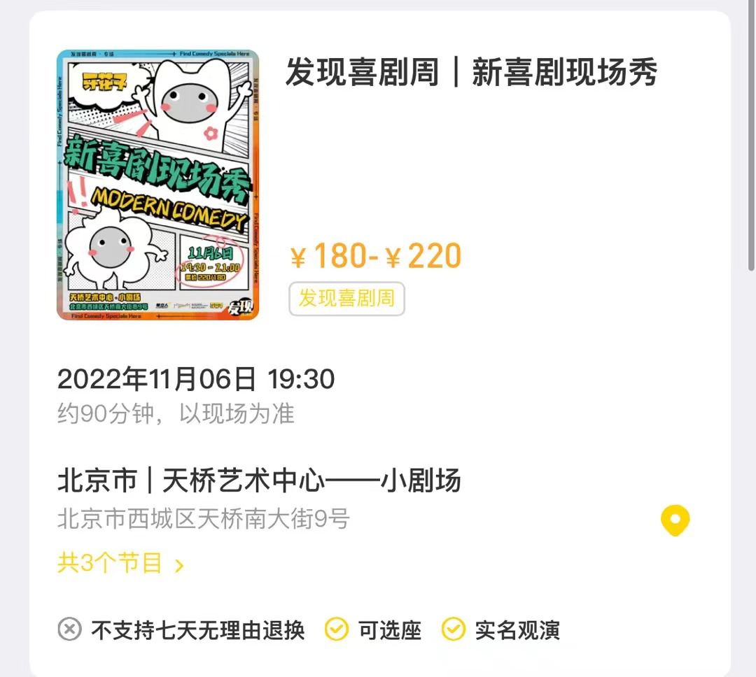 以单立人的小剧场6人拼盘演出为例,票价在200左右,剧场满员150人左右,一场演出的收入只有三万,扣除公司抽成、场地、人工等各种费用,到了演员手里已经不剩多少了。而能到满员的演出基本都是有一定知名度的头部演员,演出一周可能只有1到2次,频率不会太高。头部演员生存尚且艰难,更别提只能参加开放麦的新人演员了。